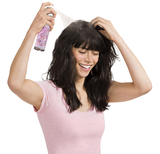 Separate your hair into sections, hold the bottle 12” away, and spray into your roots. Use a little or a lot — it just depends on what you need.