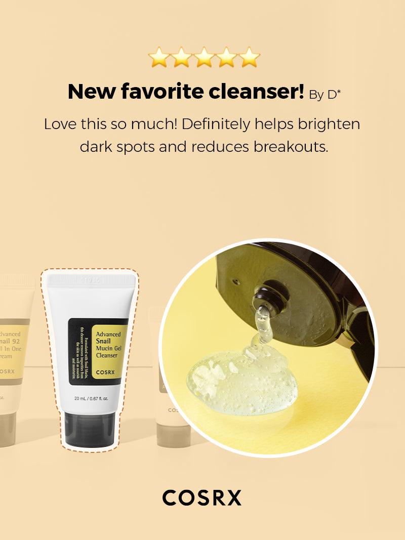 Cosrx Advanced Snail Mucin Gel Cleanser (0.67 fl.oz /20ml) - With 10,000ppm snail secretion filtrate, it protects the skin barrier and does not strip the skin.