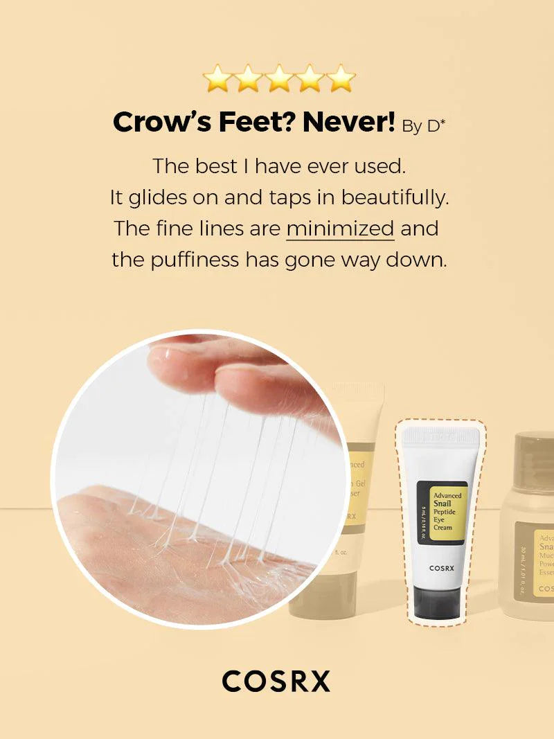 Cosrx Advanced Snail Peptide Eye Cream (0.16 fl.oz / 5ml) - Contains 72% of snail secretion filtrate and peptides to reduce dark circles, fine lines and wrinkles.