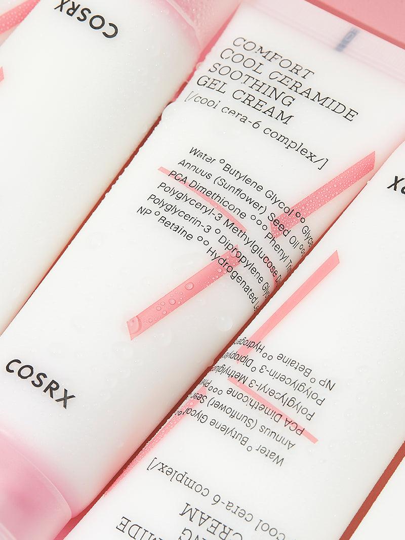Cooling gel cream infused with ceramide to moisturize and repair skin barrier.
