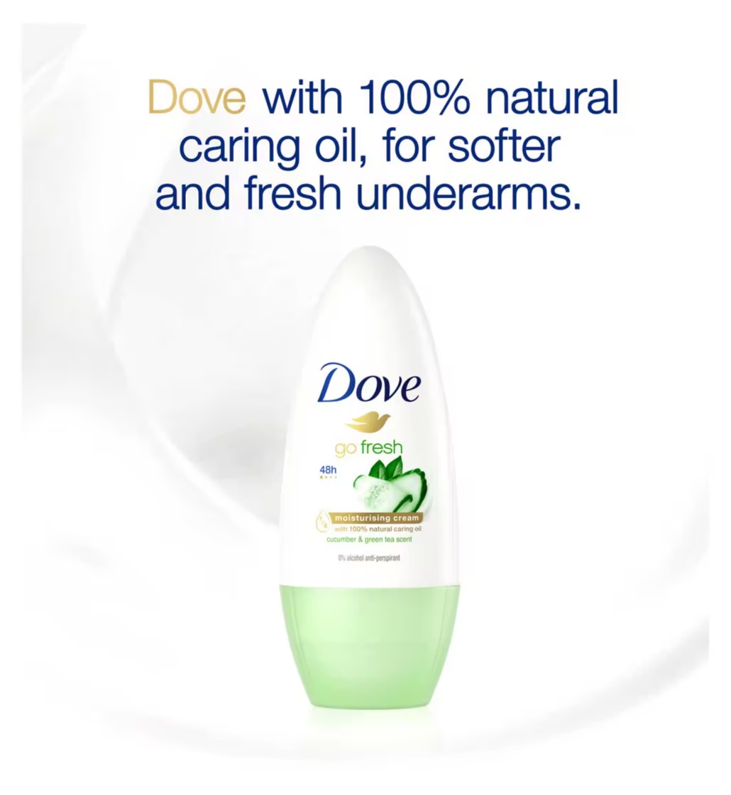 Choose Dove Go Fresh Cucumber and Green Tea Anti-perspirant Deodorant Roll On 50ml to give your morning a burst of cucumber freshness with a soothing hint of sweet green tea.