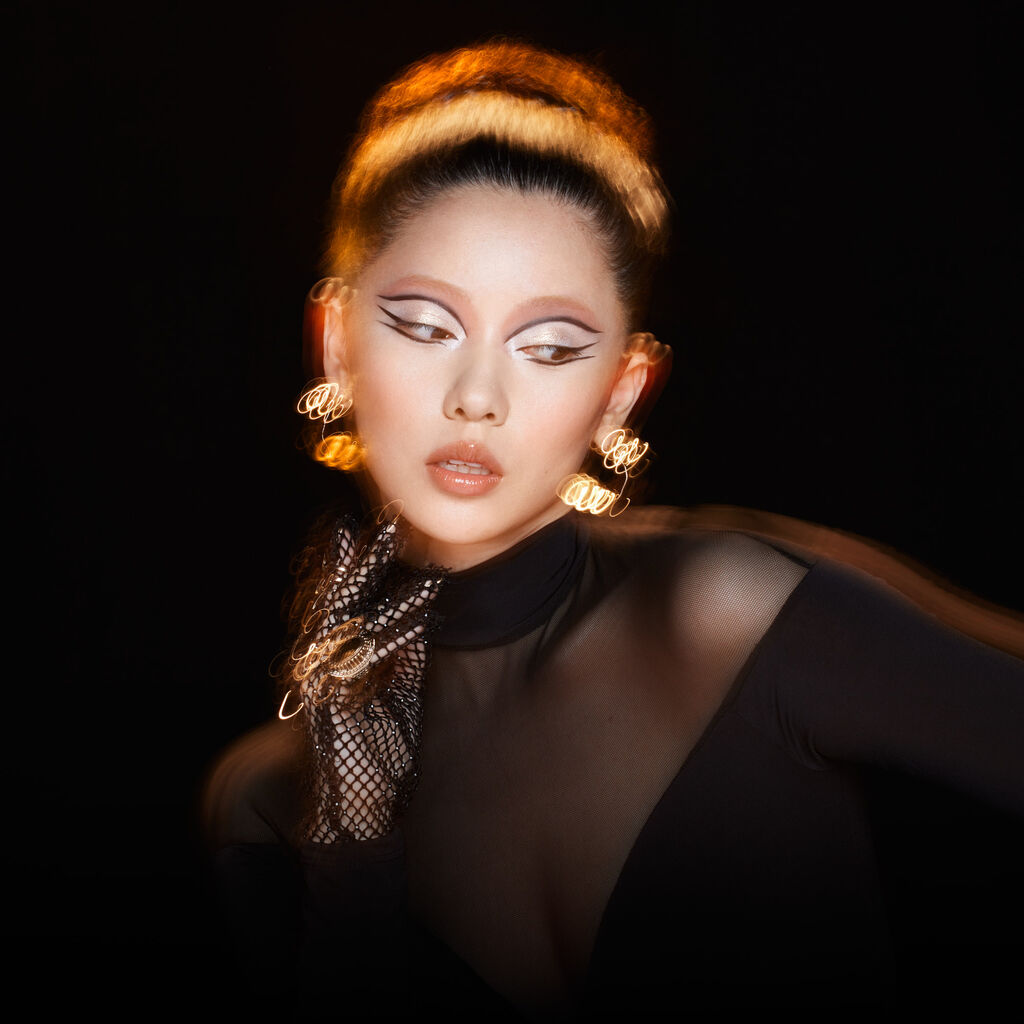 3. For a soft pearlescent glow, apply the gloss hybrid shadow ‘Manifest It ’ to bare lids, using your finger, or a flat brush.