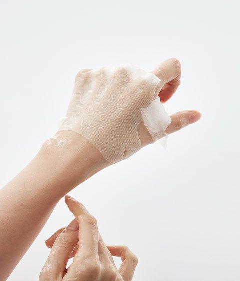 1) After cleansing, place the sheet mask on clean and prepared face.