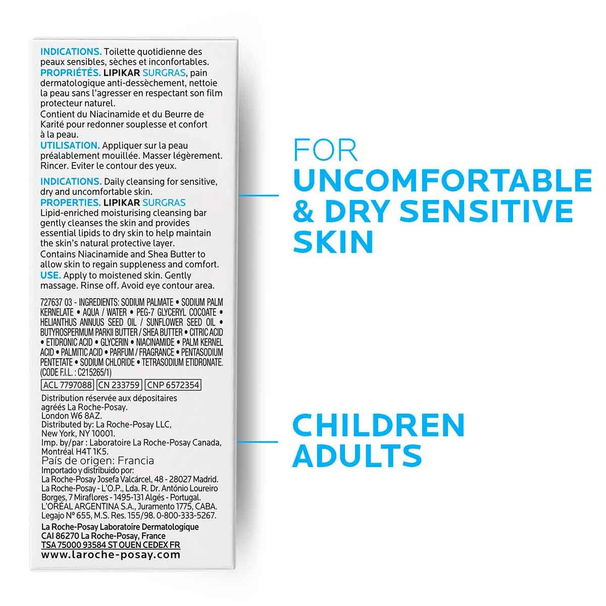 LIPIKAR PAIN SURGRAS, lipid-enriched moisturising cleansing bar gently cleanses the skin and provides essential lipids to dry skin to help maintain the skin's natural protective layer.