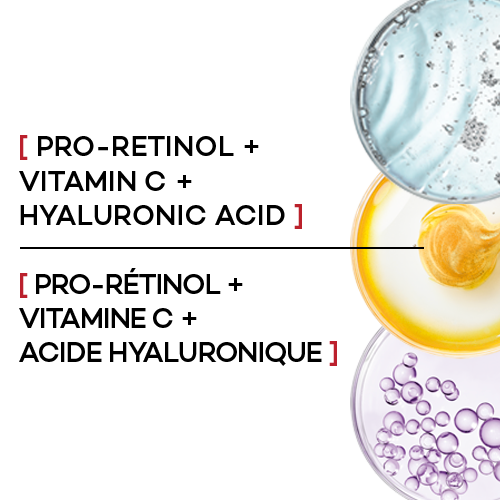 With Pro-Retinol, Vitamin-C and Hyaluronic Acid, our most advanced anti-aging care acts on 3 key signs of aging in 1 week. 1. Reduces wrinkles 2. Firms 3. Brightens.