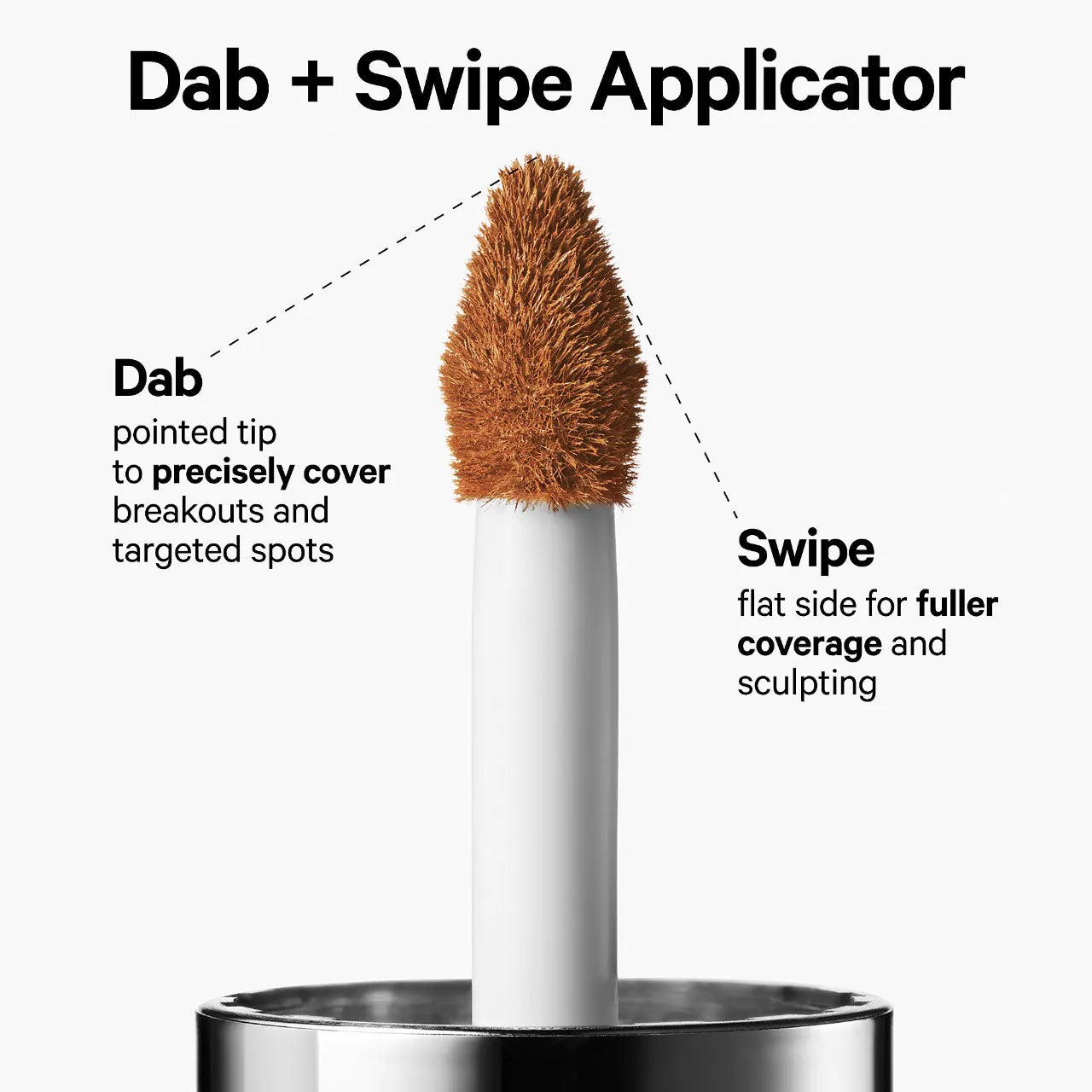 Swipe using the flat side to cover the look of dark circles and visibly even skin tone.