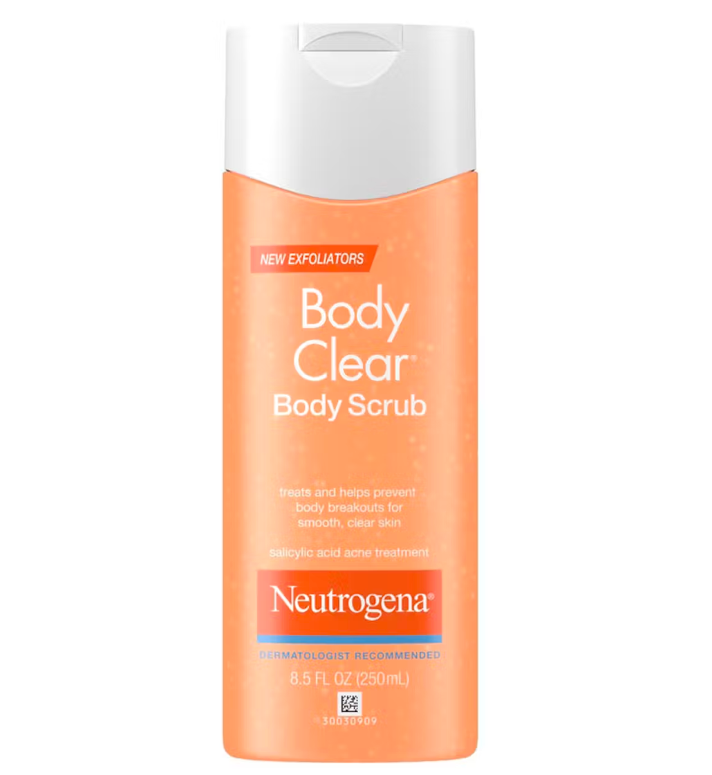 Treat acne on the back, chest and shoulders with Neutrogena® Body Clear® Body Scrub with 2% Salicylic Acid acne treatment. Specially formulated for body acne, this effective scrub with gentle exfoliators sweeps away dead skin and cleans deep into pores to give you clear, smooth skin on the back, chest and shoulders.