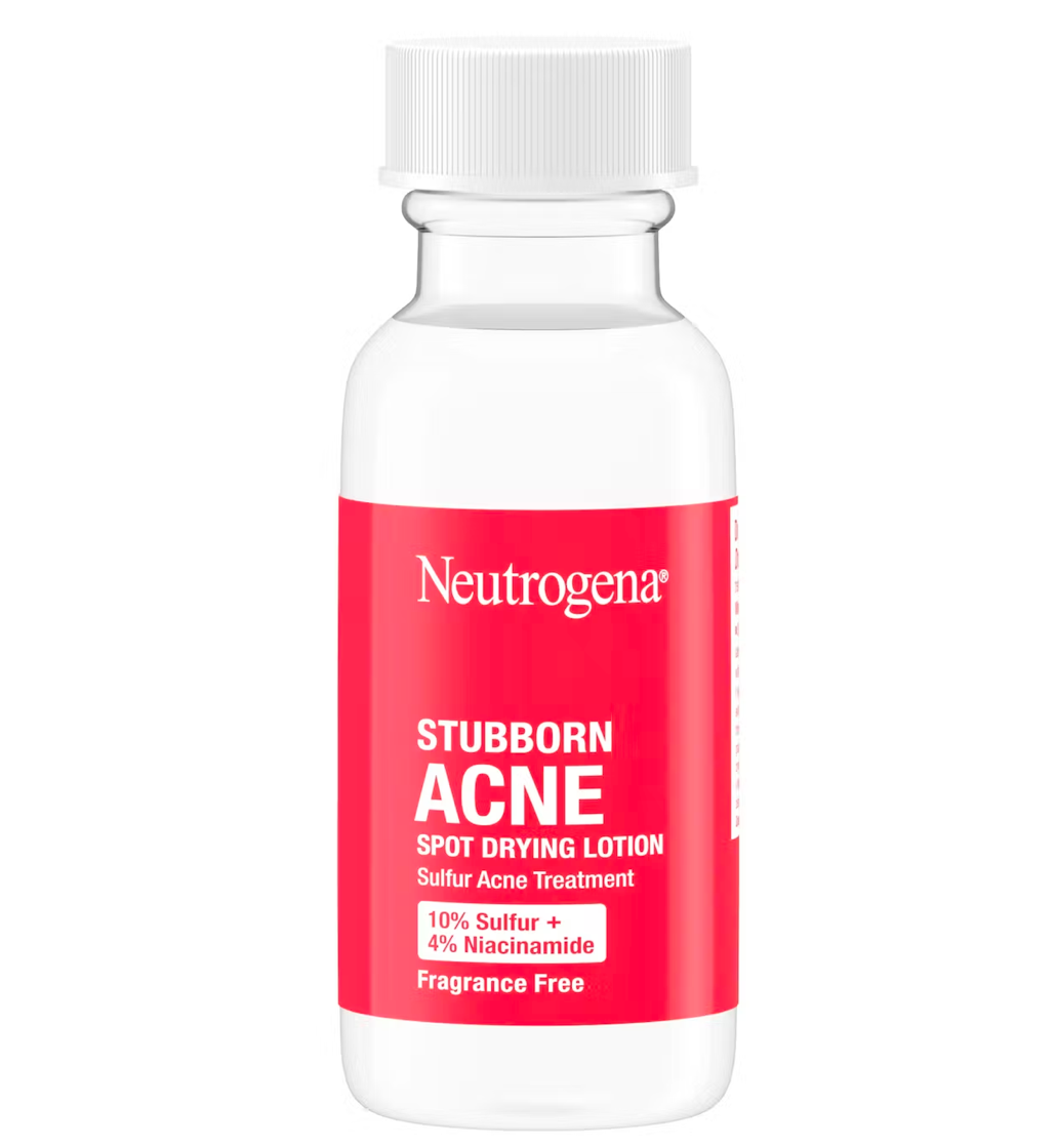 Clear up acne while reducing redness and discomfort with Neutrogena Stubborn Acne™ Spot Drying Lotion. Clinically proven to provide fast-acting results, pimples look visibly clearer in just one day. This fast-acting acne is packed with 10% sulfur, the maximum level of sulfur available over-the-counter, to penetrate pores to help eliminate stubborn acne. The fragrance-free formula also includes niacinamide, which helps target dark spots and post-acne marks.