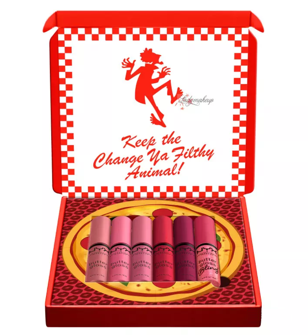 NYX Pro Makeup Home Alone Little Nero's Pizza Set includes 6 pink and red fan-fave shades of butter gloss with a non-sticky, high-shine finish!