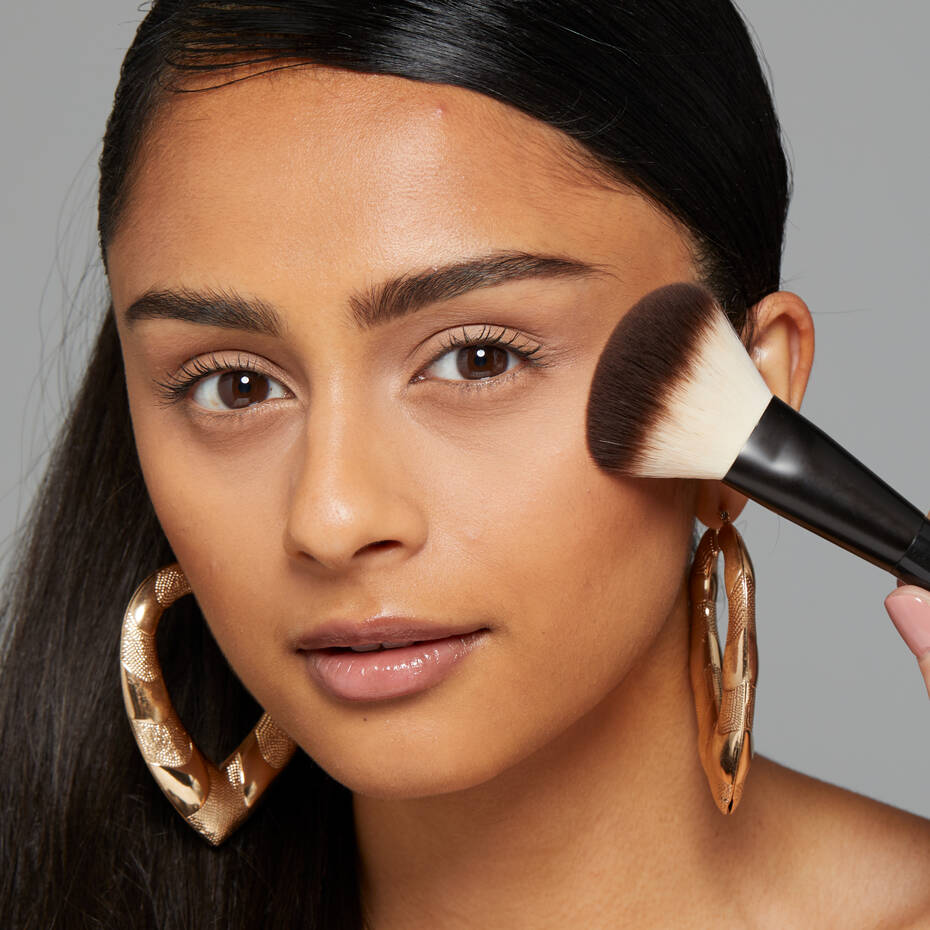 Apply NYX Professional Makeup 3 Steps to Sculpt with a Total Control Drop Foundation Brush . Use the darker shades to contour the hollow areas of your face, a medium shade to highlight the high points of your face and the lightest shade to illuminate.