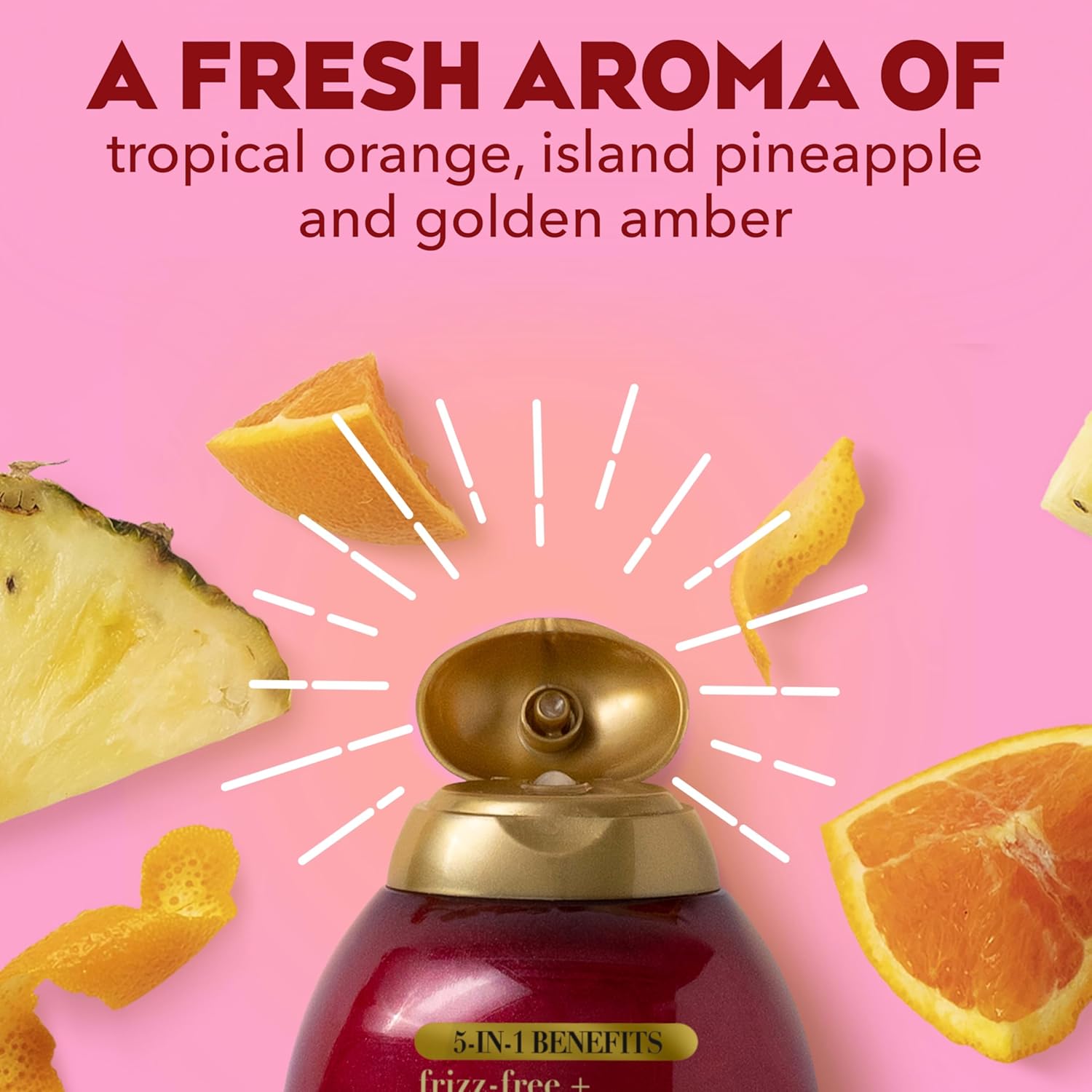 Make your showers count for more! OGX Frizz-Free + Keratin Smoothing Oil Conditioner is a true multitasker with the benefits of five products in one. It helps strengthen hair, improve flexibility, protect against humidity, keep hair frizz-free and reveal shiny hair—all in just one bottle. With hints of tropical orange, island pineapple and golden amber, it’ll make your strands smell as good as they feel. Use with OGX Frizz-Free + Keratin Smoothing Oil Shampoo for maximum results.