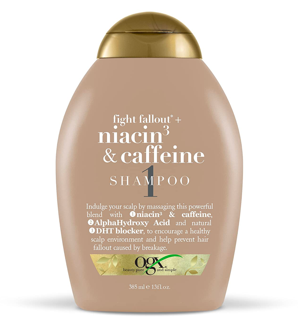 Apply shampoo generously to wet hair, massage into a lather through to ends, then rinse the hair thoroughly. After shampooing, follow with OGX Fight Fallout + Niacin3 & Caffeine Conditioner.