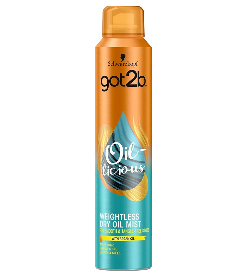 got2b Oil-Licious Weightless Dry Oil Mist is an innovative easy to use hair styling oil mist designed to reduce frizz and leave your hair looking smooth, shiny and tangle free. Vegan and containing Argan Oil, the non greasy formula has a beautiful subtle tropical fragrance, is ultra lightweight and especially good for dry hair.
