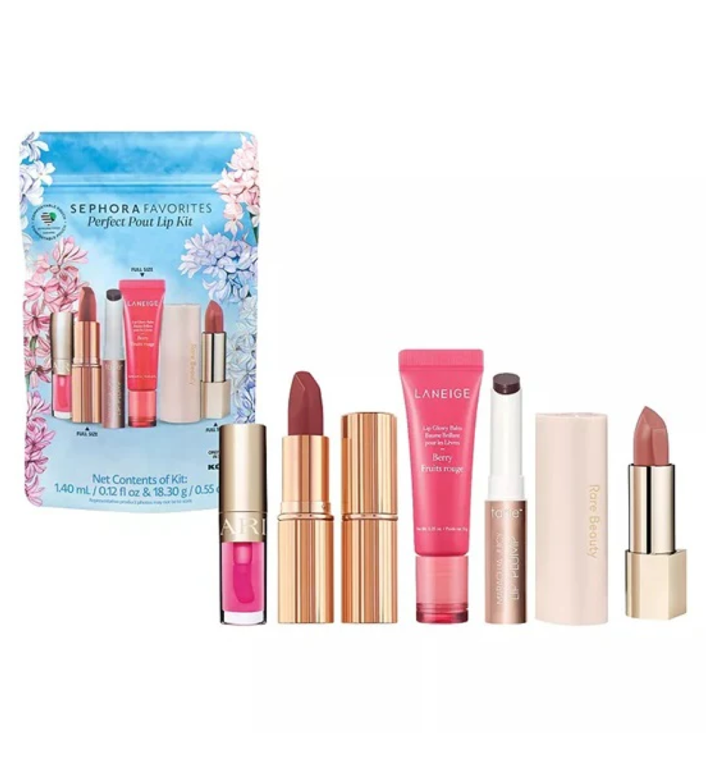 Create your new signature pout. This extra juicy set includes 5 gorgeous lip product, three full size and two deluxe. This set is curated with everything you need to keep your lips hydrated and lush this Spring.