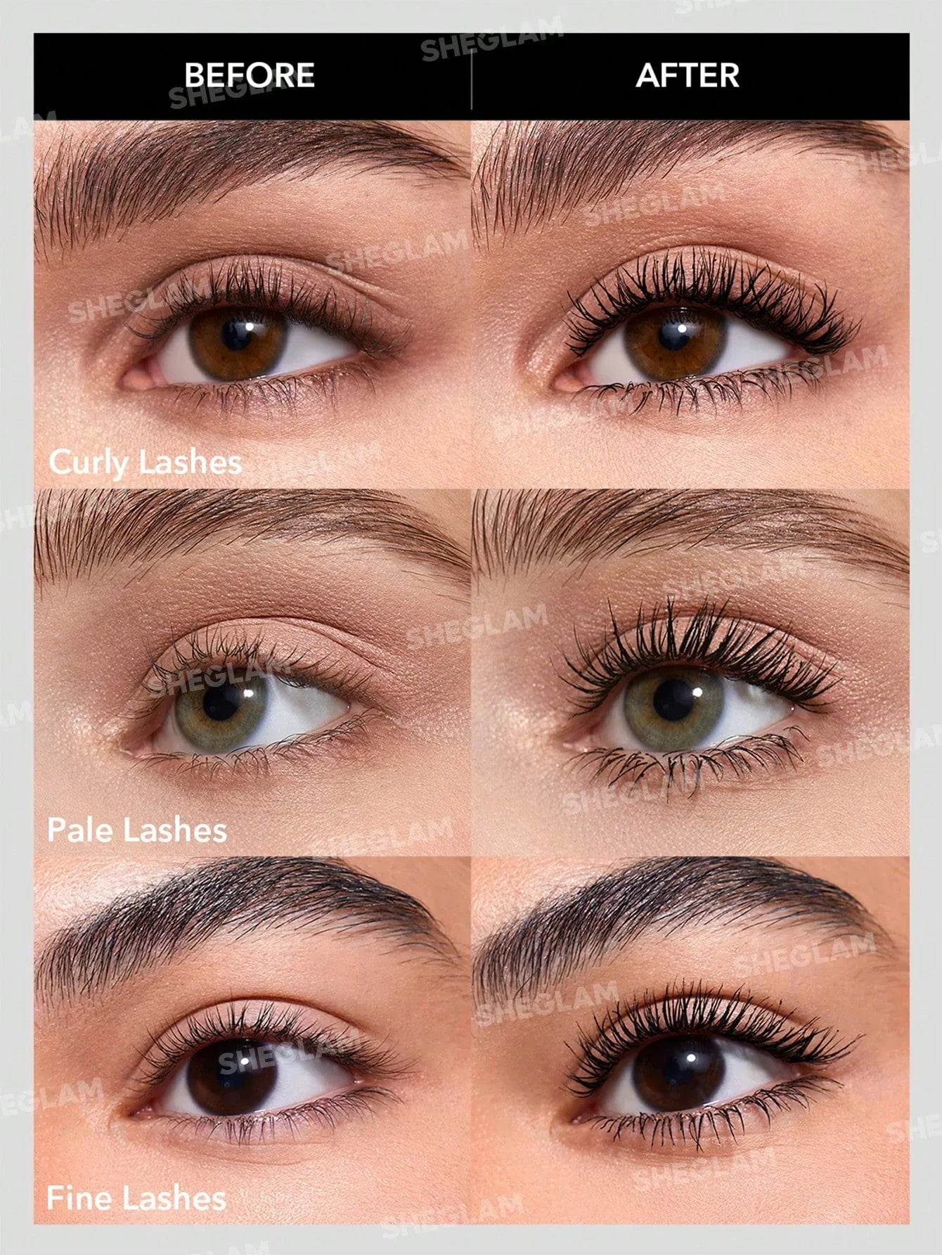 Sheglam All-in-One Volume & Length Mascara features a dual-ended brush with two different quick-drying, smudge-proof, yet washable formulas. Apply together or separately for a totally custom, clump-free look that delivers intense volume, length, curl, and separation!