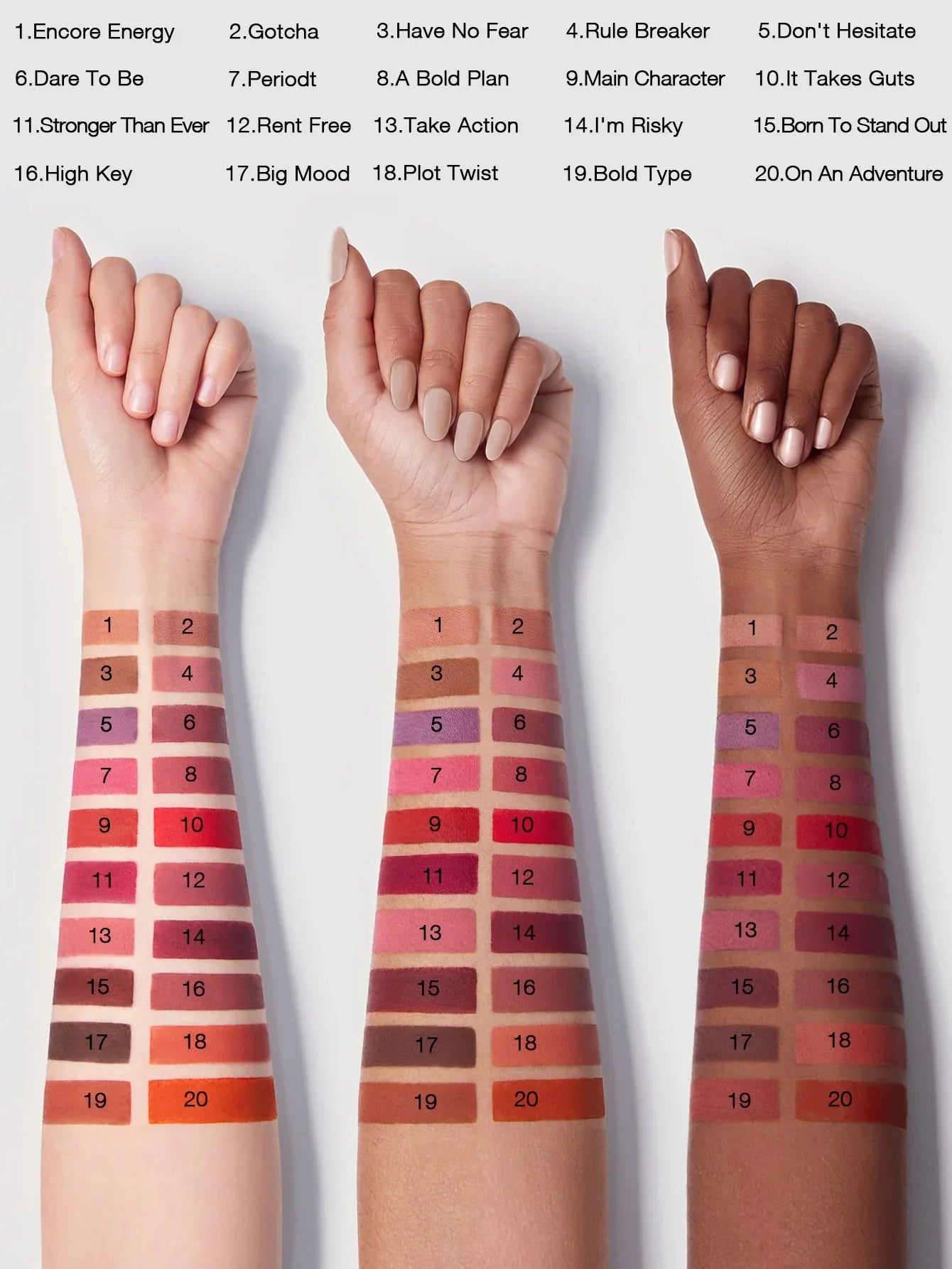 Time to kiss your old matte lippies goodbye! Our new high-coverage matte lipstick gives you the perfect matte pout for all-day wear. No matter the occasion, get a highly pigmented matte lip without the transfer and blotchiness!