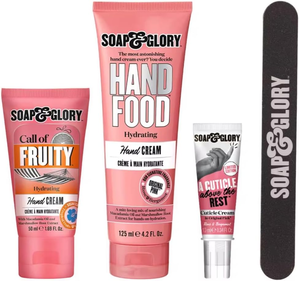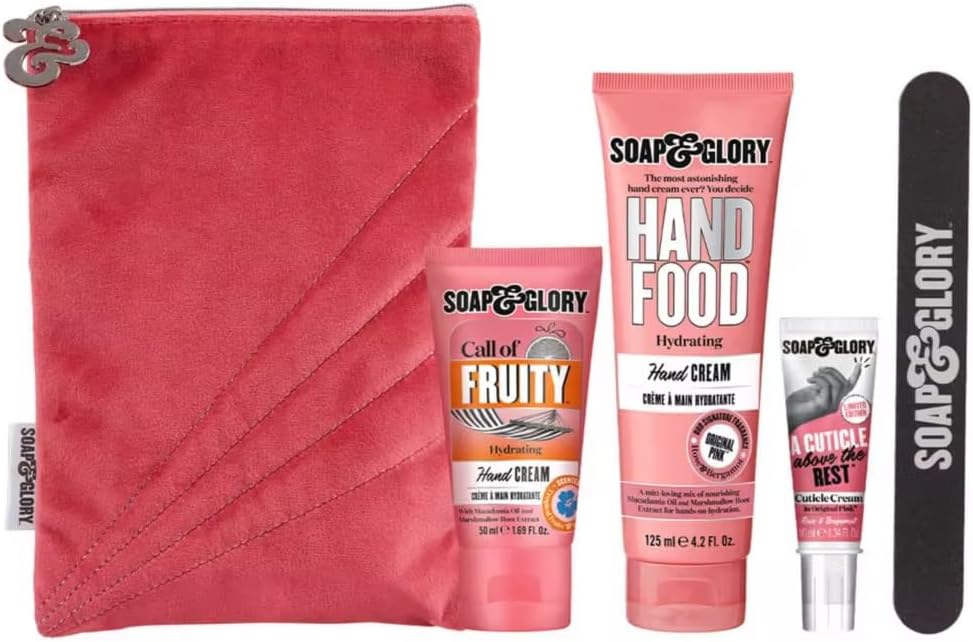 Floral or fruity? It’s your choice with the moisturising magic of our Original Pink & Call of Fruity hand creams to treat those tip – plus cuticle care and a nail file to help whip party-ready manicures into shape!