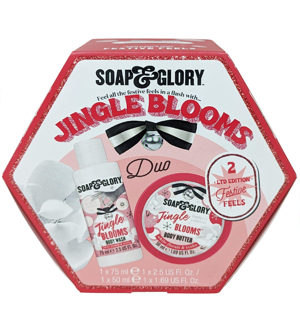Feel all the festive feels in a flash with…JINGLE BLOOMS DUO, containing travel-sized body wash and body butter.
