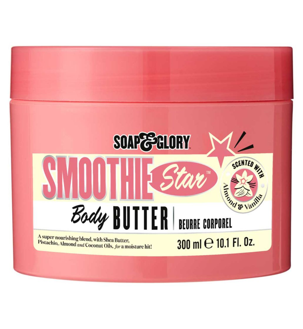 We’ve concocted our SMOOTHIE STAR™ Buttercream with a recipe for decadence in mind – a sumptuous slathering of skin-loving nourishment that’s lightly whipped and formulated with five dryness-diminishing oils. Finished with a dash of our SMOOTHIE STAR™ fragrance of almond and vanilla, for a scrumptious skin loving treat.