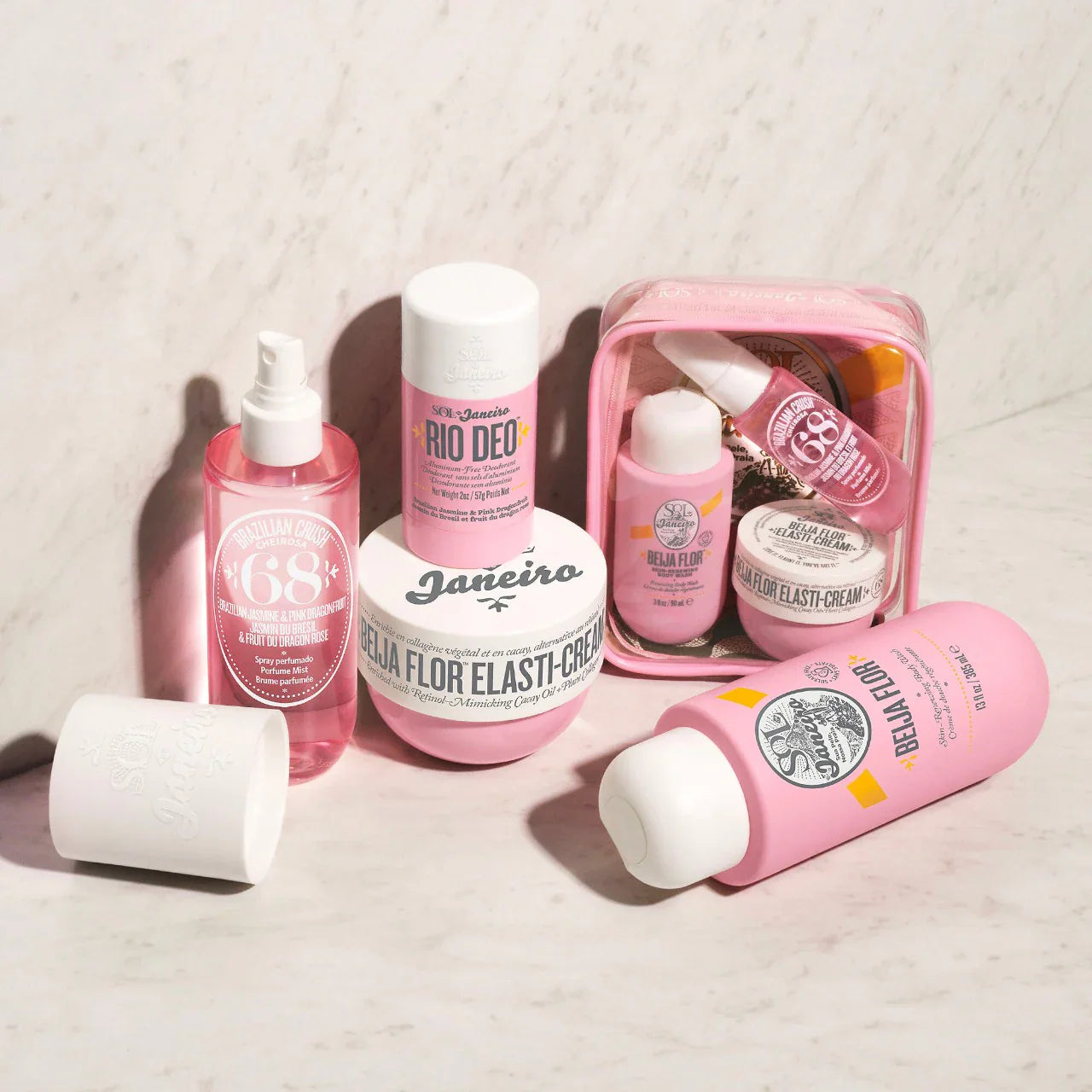Get set with a collagen-supporting routine. Pamper your skin with Beija Flor™ Renewing Body Wash, a creamy cleanser with vegan squalane. Massage on Beija Flor™ Elasti-Cream with Collagen and Squalane, infused with cacay oil and vegan collagen for visibly plump, resilient skin. Finish with the bright, floral scent of Brazilian Crush Cheirosa ’68 Beija Flor™ Hair & Body Fragrance Mist.
