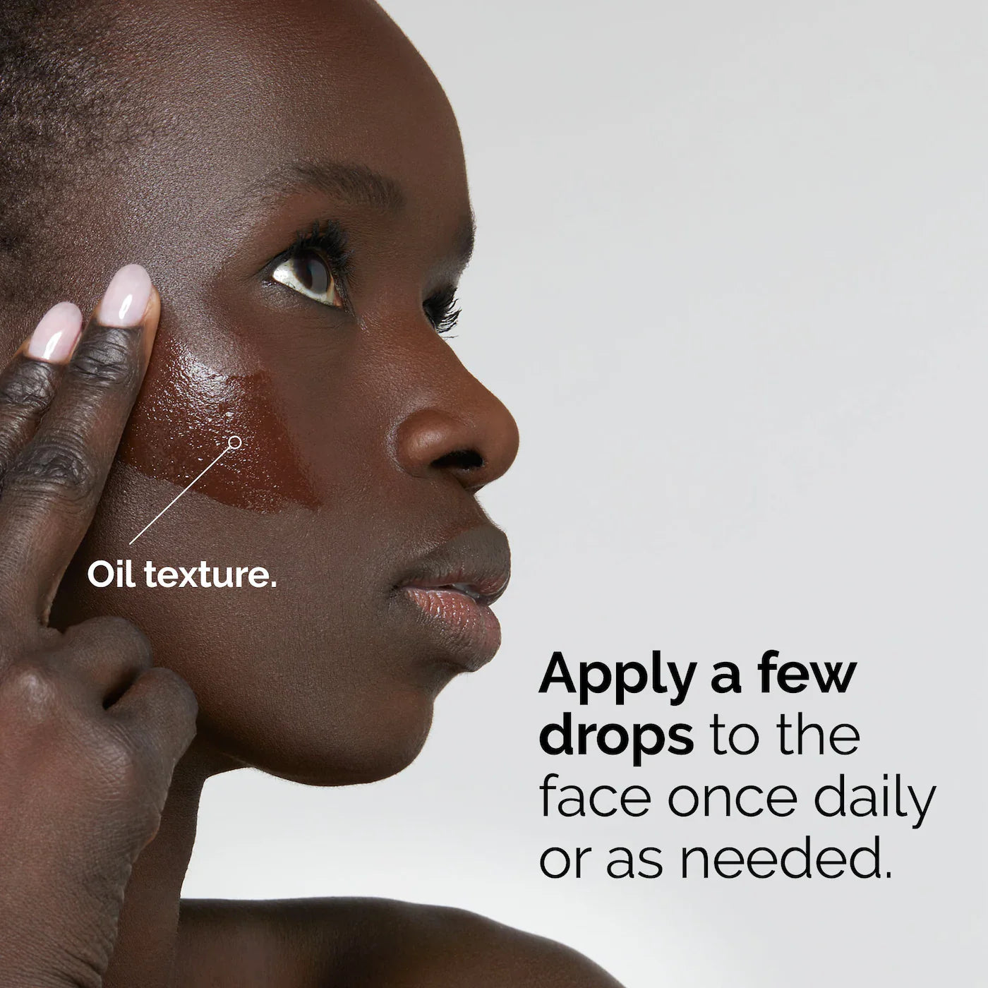 Apply a few drops to the entire face once daily or as needed.