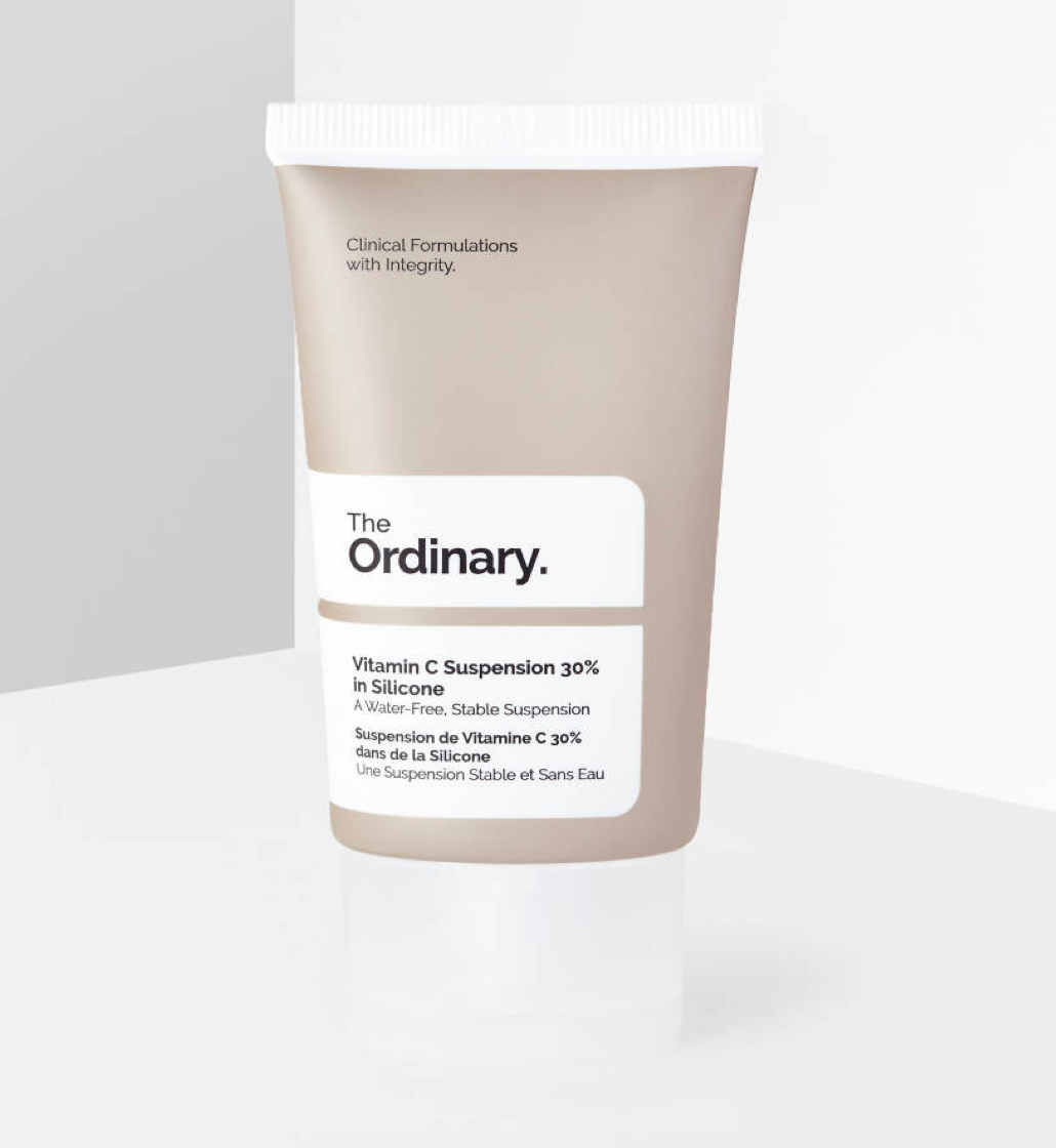 A water-free, stable suspension of 30 percent pure l-ascorbic acid in light silicones.