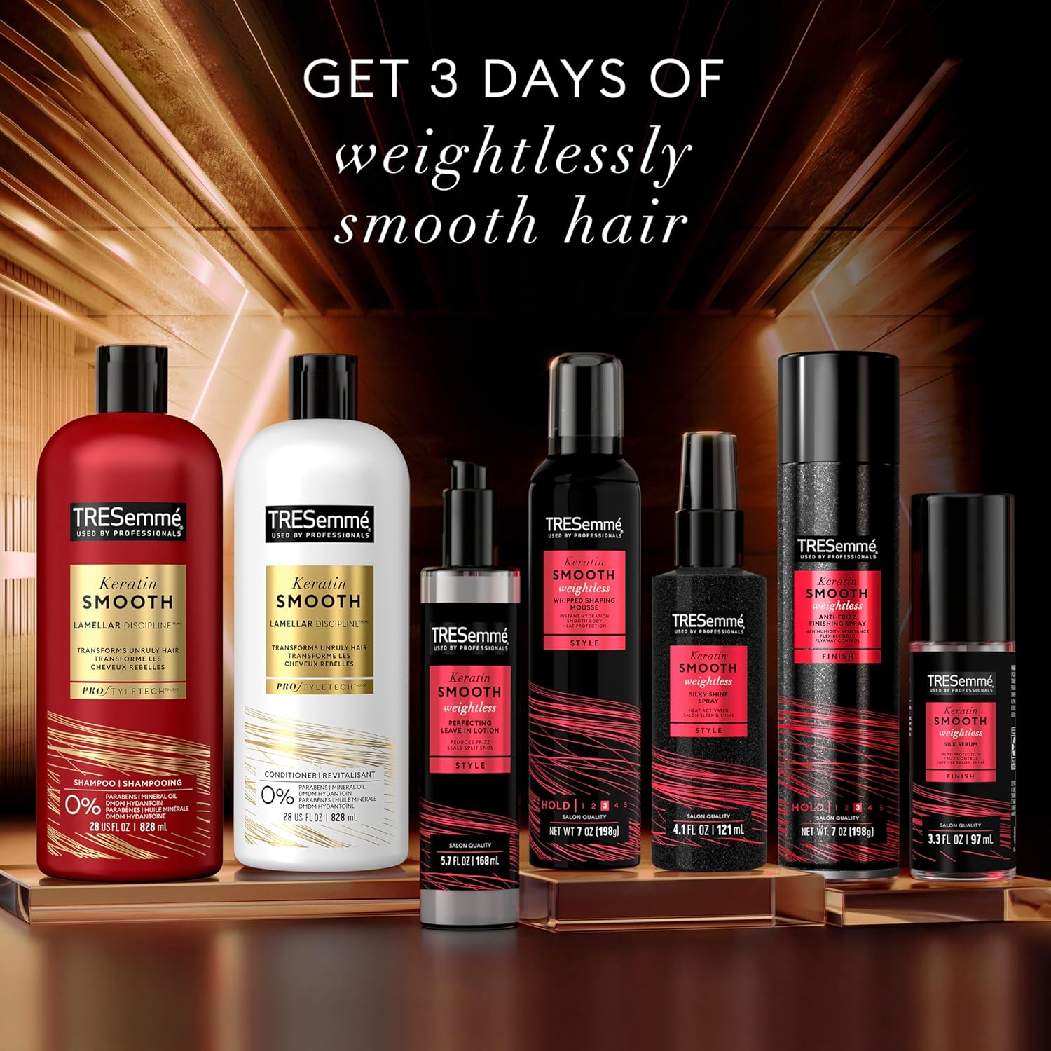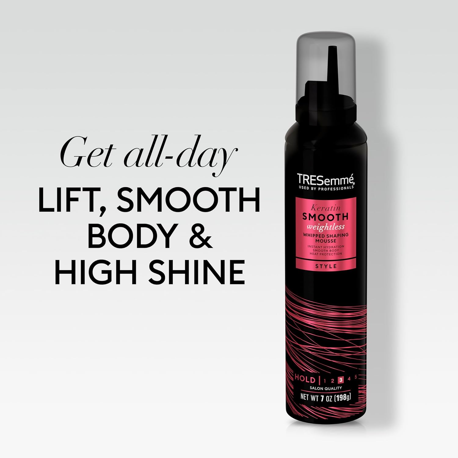 Get 3 days of weightlessly smooth hair with the TRESemmé Keratin Smooth Whipped Shaping Mousse.