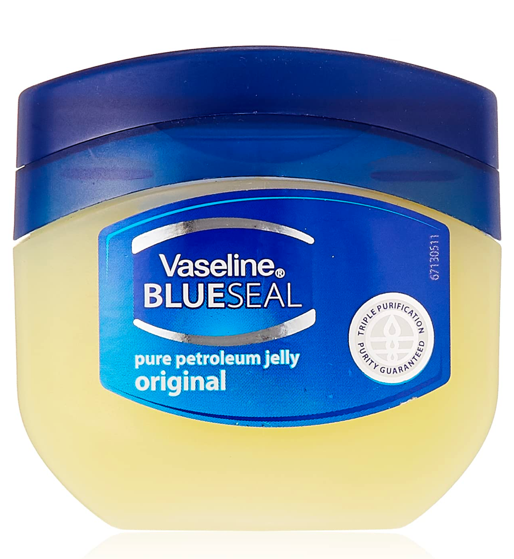 Vaseline® Blue Seal Original Petroleum Jelly is made with 100% pure petroleum jelly, triple-purified to lock in moisture for healing and protection against dry skin.