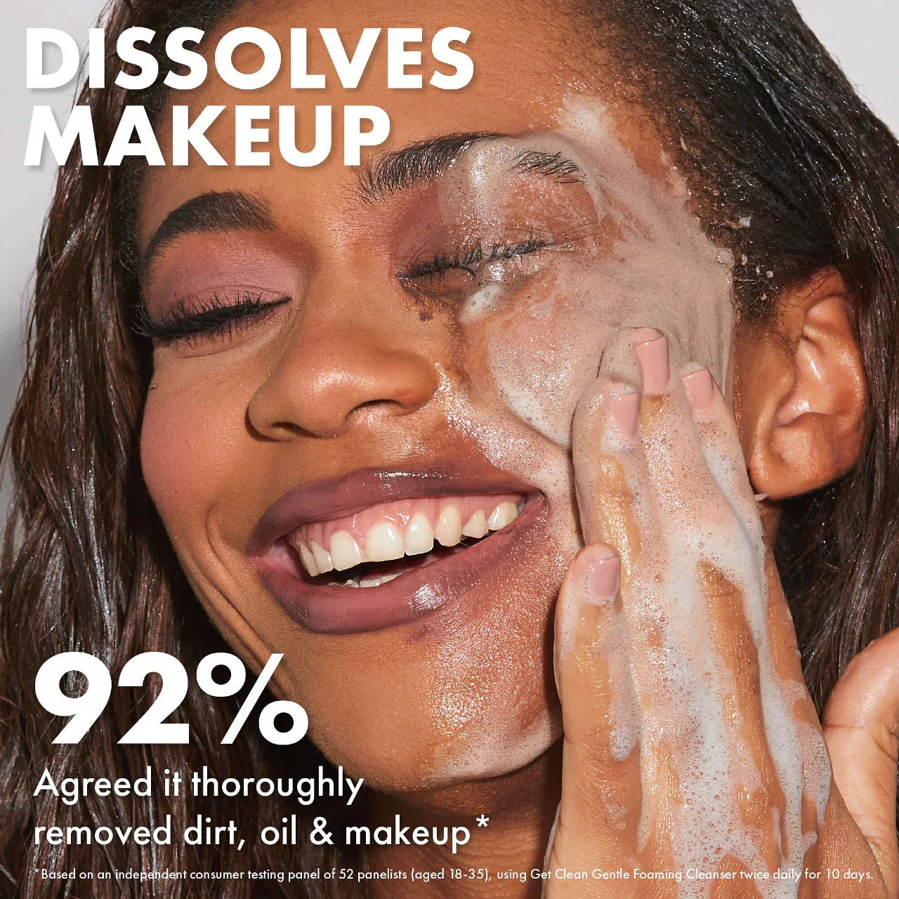 Get Clean is a hardworking cleanser that is gentle and skin-loving enough for even the most sensitive skin. 2% Gluconic Acid (PHA) gently exfoliates the skin while Sea Moss helps retain moisture leaving the complexion refreshed and supple. Get Clean is packed with Coconut & Amino Acid Derived Surfactants that melt away makeup while Salicylic Acid & Willow Bark work to unclog pores without stripping the skin. To turn Get Clean’s gel formula into a rich, creamy, makeup melting foam, add a little water and massage into skin.